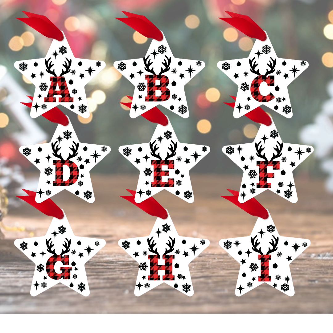 Celebrate the season with this aluminum star ornament. It features a classic plaid design for each letter of the alphabet. You have an option to customize the back with the name and year. This ornament is durable, lightweight, and beautifully detailed—a festive addition that makes gift-giving memorable.